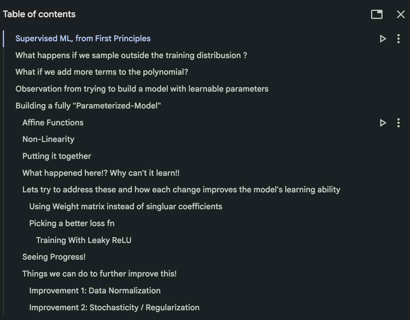 Again the goal of the notebook was to get to autograd only implementation which captures all the core compnents and how+why those things and are required. I literally try and code out each piece as seen in the TOC and train it on a ambitious brain-child of a dataset of my mine! Even though my model performs underwelmingly on the said task, it still demostrates the amazing learning capabilites of transformers and opens the door to important questions about data generation when randomness is involved and how much impact just improving the “representation” can have on model performance etc.