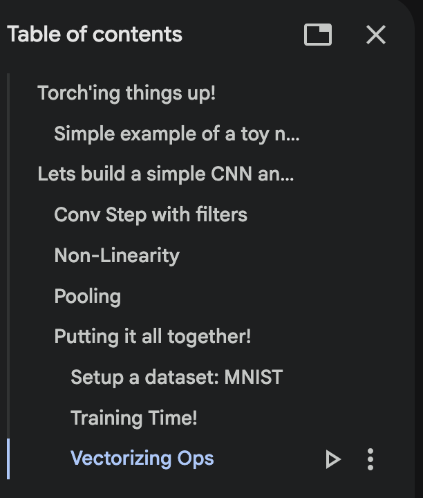 The notebook kicks off with building a naive conv op to build my first CNN layer, deeply understand the conv op and train it. Then when i do train it , i see that the GPU never gets used and the training is ridiculously slow! Guess what? GPU’s HATE LOOPS! To solve this we look at how torch can help us with thinks like “unfold” and take our first steps into thinking about “vectorizing” ops A.K.A , thinking about GPU friendly matrix ops instead of naively coding in torch.