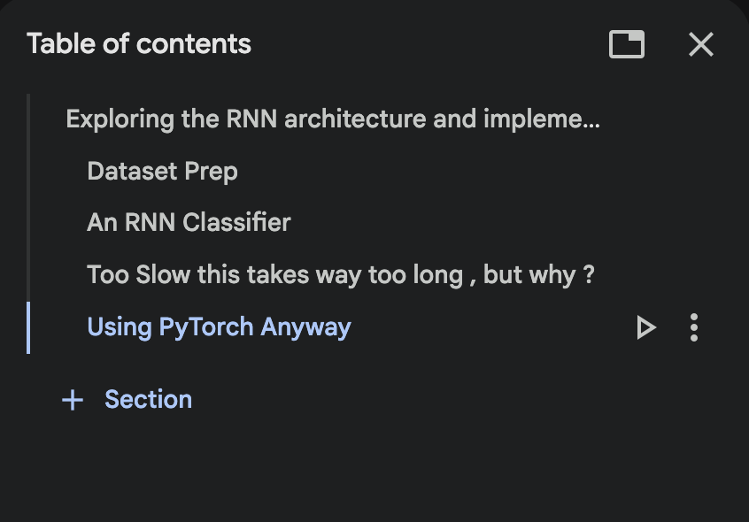 The notebook mainly contains implementing an RNN doing BPTT using just auto-grad, understanding how “parallel” RNN training can get and building a small RNN classifier which reads “names” char by char and tries to tell us which language the name is from. I try my auto-grad only mode, get super slow model training and then go on to truly appreciate the CPP torch provides and endup using their API. Along the way I explore grad clipping, NLLLoss, playing around the mental model of different configs RNNs can operate in i.e: 1:1 , 1:many , many:1 , many:many and slowly build the mechanics to understand sequential models and auto-regressive behaviour leading up to transformers.